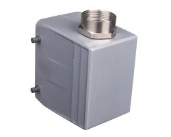 Powyższa prostokątna obudowa typu kątowego do wtyczki została wyprodukowana przez znany i ceniony na całym świecie koncern Lapp Kabel. Tradycja tej marki na polskim rynku sięga już 1999 roku. Najwyższej klasy specjaliści współpracujący z marką zadbali o dobór jak najwyższej jakości materiałów, z których wykonano prezentowany osprzęt. W przypadku prezentowanej obudowy jest to odporne na zarysowania aluminium. Dodatkowo powłoka obudowa została wykończona za pomocą malowania proszkowego. Dzięki takim staraniom obudowie przypisano wysoki stopień ochrony IP 65. Oznacza to, że produkt jest skutecznie chroniony przed szkodliwymi i niebezpiecznymi strumieniami wody oraz przed niemniej szkodliwymi pyłami. W związku z tym produkt może być z powodzeniem instalowany również na zewnątrz budynków. Obudowa pracuje przy temperaturach wahających się od - 40 do 100 °C. Ponadto długość tego osprzętu wynosi 49,6 mm, szerokość 56 mm, a jej wysokość jest równa 75 mm. Produkt jest częścią innowacyjnej kolekcji EPIC H-A.