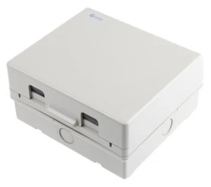 IP65 Obudowy gniazd izolowanych. Jedna i dwie ścieżki IP65 są przeznaczone do zastosowań zewnętrznych i zostały zaprojektowane z myślą o ochronie standardowych gniazd, ostrosłupów, przełączników i płyt kompaktowych przed potencjalnie niebezpiecznym zasilaniem w trudnych warunkach. Odporność na korozję dzięki wycięciom o średnicy 20 mm umieszczonym TOP, dołu, z boku i z tyłu. Obudowy te są szare i mają zatrzaskową pokrywkę lid, którą można dodatkowo zabezpieczyć za pomocą kłódki. Zgodny z normą CE Stopień ochrony IP65 Puszki do montażu na zewnątrz budynków Szara obudowa Powlekane części Zamykana pokrywka lid Blokada zapewniająca dodatkowe bezpieczeństwo Umożliwia montaż standardowych gniazd, złączy prostych, przełączników i płyt RCD Wycięcia 20 mm umieszczone u TOP, u dołu, z boku i z tyłu 110° otwarcie drzwi Temperatura znamionowa od -25 do +60°C.