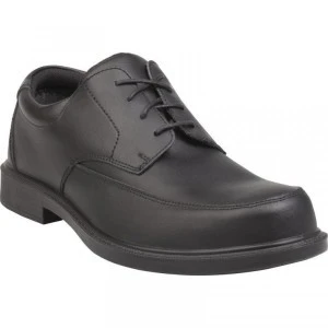 Obuwie typu derby ze skóry licowej, podeszwa z poliuretanu jednolitej gęstości Cholewka: typu Derby z lekko barwionej skóry licowej. Podszewka: poliamid. Wkładka: wymienna – pianka EVA. Podeszwa: poliuretan jednolitej gestosci. Obuwie amagnetyczne, kolor czarny rozmiar 39, zarkes rozmiarów: 39 DO 48