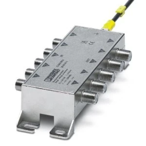 Ochrona przeciwprzepięciowa dla rozdzielacza antenowego w instalacji telewizji satelitarnej. Wejście (IN) i wyjście (OUT) za pośrednictwem łączników F, 5 kanałów dla sygnałów instalacji SAT i anten naziemnych, zacisk uziemiający na zewnątrz na obudowie.