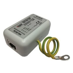 Uniwersalny ogranicznik przepięć do ochrony zgrubnej sieci LAN oraz systemów telewizji dozorowej IP-CCTV i innych interfejsów opartych na sieci Ethernet. Ochrona wszystkich par za pomocą odgromników gazowych. Zapewnia bezpieczną transmisję do 1 Gb/s. Kompatybilny ze wszystkimi standardami zasilania PoE (zgodny z PoE++ / 4PPoE wg IEEE 802.3). Urządzenie zgodne z Cat. 5E. Montaż i uziemienie poprzez zatrzask na szynę 35 mm.