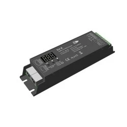 Odbiornik LED DMX512 - Dekoder DMX to mechanizm odbiorczy posiadający wbudowane cztery kanały, dla których możemy określić cyfrowy adres i uzyskać dostęp do sterowania oświetleniem LED wielokolorowym z dodatkową barwą białą (np. RGB+W). Sterowanie w przypadku dekoderów opartych o system DMX definiuje się jako zmiana jasności, koloru RGB czy temperatury barwowej CCT, gdyż każde wyjście może otrzymać przypisaną cechę do której dostęp będzie finalizowany wykorzystując jego uprzednio ustalony adres. Uzyskanie pożądanego działania nad dekoderem możliwe jest poprzez otrzymanie sygnału cyfrowego DMX512, który jest dekodowany i przetwarzany na sygnał PWM. Ze względu na zastosowanie protokołu RDM istnieje sposobność ustalenia adresu dekodera przy użyciu nadajnika DMX512 bądź z poziomu samego dekodera wykorzystując dostępny wyświetlacz LCD.