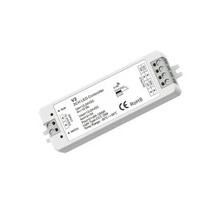 Odbiornik przeznaczony do sterowania oraz kontroli nad oświetleniem LED ze zmienną temperaturą barwową (np. taśma LED CCT). Produkt umożliwia dostęp do dwóch wyjść, do którego podłączone zostaje oświetlenie led, które można swobodnie ściemniać/rozjaśniać oraz regulować w zakresie temperatury barwowej 2700-6500K za pomocą sygnału PWM. Elementarną formą komunikacji odbiornika V2 jest bezprzewodowa droga radiowa, którą łączy się z urządzeniem nadawczym takim jak pilot do led bądź panel naścienny led. Urządzenie odbiorcze V2 cechuje się zakresem napięcia wejściowego rzędu 12-24V oraz płynną pracą ściemniania PWM.