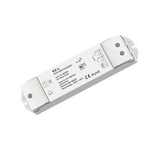 Odbiornik przeznaczony do sterowania oraz kontroli nad oświetleniem LED ze zmienną temperaturą barwową (np. taśma LED CCT). Produkt udostępnia dostęp do dwóch wyjść, do którego podłączone zostaje oświetlenie led. Umożliwia to swobodne ściemnianie/rozjaśnianie oraz regulacje temperatury barwowej w zakresie 2700-6500K za pomocą sygnału PWM. Elementarną formą komunikacji odbiornika V2-L jest bezprzewodowa droga radiowa, którą łączy się z urządzeniem nadawczym takim jak pilot do led bądź panel naścienny led. Odbiornik led został zaopatrzony w dodatkowe niezależne wejście bezpotencjałowe umożliwiające ściemnianie/rozjaśnianie przy użyciu przycisku zwiernego. Urządzenie odbiorcze V2-L chechuje się dużą mocą wyjściową wynoszącą 16A oraz płynną pracą ściemniania PWM.