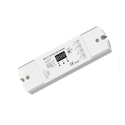 Odbiornik przeznaczony do sterowania oraz kontroli nad wielokolorowym oświetleniem LED wraz z dodatkową barwą białą (np. taśma LED RGB+W). Produkt pozwala na dostęp do czterech wyjść, do którego podłączone zostaje oświetlenie led. Umożliwia to swobodne ściemnianie/rozjaśnianie, sterowanie kolorów w zakresie palety RGB oraz barwy monochromatycznej (białej) za pomocą sygnału PWM. Elementarną formą komunikacji odbiornika V4-L jest bezprzewodowa droga radiowa, którą łączy się z urządzeniem nadawczym takim jak pilot do led bądź panel naścienny led. Ważnym atutem wyróżniającym się na tle innych odbiorników jest możliwość ustalenia krzywej ściemniania oraz częstotliwości sygnału PWM. Poza tym urządzenie odbiorcze V4-L cechuje się zakresem napięcia wejściowego rzędu 12-24V oraz płynną pracą ściemniania PWM.