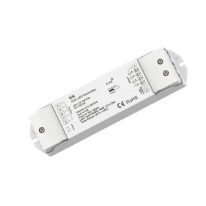 Odbiornik przeznaczony do sterowania oraz kontroli nad wielokolorowym oświetleniem LED wraz z dodatkową barwą białą (np. taśma LED RGB+W). Produkt udostępnia dostęp do czterech wyjść, do którego podłączone zostaje oświetlenie led. Umożliwia to swobodne ściemnianie/rozjaśnianie, sterowanie kolorów w zakresie palety RGB oraz barwy monochromatycznej (białej) za pomocą sygnału PWM. Elementarną formą komunikacji odbiornika V4 jest bezprzewodowa droga radiowa, którą łączy się z urządzeniem nadawczym takim jak pilot do led bądź panel naścienny led. Urządzenie odbiorcze V4 cechuje się zakresem napięcia wejściowego rzędu 12-36V oraz płynną pracą ściemniania PWM.