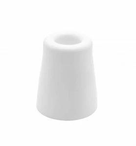 Odbojnik zabezpiecza ścianę i meble przed uszkodzeniami spowodowanymi uderzeniami klamki lub klucza w drzwiach. Odbojnik drzwiowy wkręcany jest na długiej śrubie do podłogi. Wykonany z gumowego materiału zatrzymuje drzwi przed uderzeniem w ochranianą powierzchnię nie uszkadzając przy tym drzwi. Wybrany model jest w kolorze białym, o wysokości 6 cm. Dobrze wpasuje się do wnętrz jasnych, neutralnych.