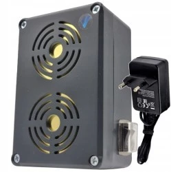 - Mocny energooszczędny generator ultradźwięków z modułem automatycznej zmiany częstotliwości. Urządzenie emituje podlegający zmianie ultradźwięk, który wytwarza dla gryzoni nieprzyjemne, nieznośne środowisko, uniemożliwiając im tym samym przebywanie i osiedlanie się w pobliżu chronionej przestrzeni.