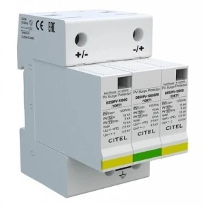 Ogranicznik CITEL DC T1+T2 / 48239 DS50PVS-1000/G Warystorowo-iskiernikowy ogranicznik przepięć typu 1+2. Spełnia obowiązujące normy i standardy. Wykonany w odpornym na uszkodzenia układzie połączeń Y. 5 lat gwarancji Przewodność na biegun = 12,5kA Odporny na skutki wywołane uszkodzeniem instalacji