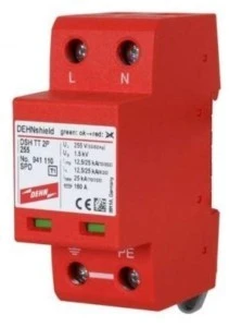 Ogranicznik DEHN AC 1-faza T1+T2 / 941110 DSH TNS 255VAC Napięcie znamionowe AC U N - 230 V Największe napięcie trwałej pracy AC U C - 255 V Energia właściwa (L-N)/(N-PE) (W/R) - 39 kj/Ohm / 156 kj/Ohm Znamionowy prąd wyładowczy (8/20)(L-N)/(N-PE) I n - 12,5 / 25 kA Napięciowy poziom ochrony (L-N)/(N-PE) U P - ≤ 1,5 kV / ≤ 1,5 kV Czas zadziałania tA - ≤ 100 ns Maks. dodatkowy bezpiecznik - 160A gL/gG Przepięcie dorywcze (L-N) U T - 440 V / 5 sekund Przepięcie dorywcze (N-PE) U T - 1200 V / 200 ms Przepięcie dorywcze (cecha) - wytrzymały wskaźnik uszkodzenia / działania - zielony / czerwony Ilość biegunów - 1 Przekroje przewodów (L, N, PE, ¥) min. - 1,5 mm 2 drut / linka Przekroje przewodów (L, N, PE, ¥) maks. - 35 mm 2 wielodrutowo / 25 mm 2 linka Montaż - na szynie 35 mm wg EN 60715 Materiał obudowy - Thermoplast, kolor czerwony, UL 94 V-0 Do stosowania - wewnątrz pomieszczeń Stopień ochrony - IP20 Szerokość montażowa - 2 modułów TE, DIN 43880