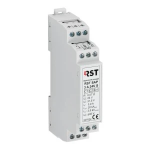 Ogranicznik przepięć do ochrony ekranowanych linii pętli dozorowych systemów sygnalizacji pożaru. Dzięki izolacji ekranu kabla od uziemienia (oznaczenie S - uziemienie pośrednie poprzez GDT) może być stosowany w dowolnym miejscu, w systemach, w których dopuszcza się uziemienie ekranu tylko przy centrali alarmowej. Ograniczniki RST SAP z diodami o podwyższonej odporności stanowią najbardziej wytrzymałą serię produktów RST.