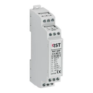Ogranicznik przepięć do ochrony ekranowanych linii pętli dozorowych systemów sygnalizacji pożaru. Dzięki izolacji ekranu kabla od uziemienia (oznaczenie S - uziemienie pośrednie poprzez GDT) może być stosowany w dowolnym miejscu, w systemach, w których dopuszcza się uziemienie ekranu tylko przy centrali alarmowej. Ograniczniki RST SAP z diodami o podwyższonej odporności stanowią najbardziej wytrzymałą serię produktów RST.