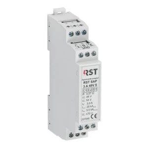 Ogranicznik przepięć do ochrony ekranowanych linii pętli dozorowych systemów sygnalizacji pożaru. Dzięki izolacji ekranu kabla od uziemienia (oznaczenie S - uziemienie pośrednie poprzez GDT) może być stosowany w dowolnym miejscu, w systemach, w których dopuszcza się uziemienie ekranu tylko przy centrali alarmowej. Ograniczniki RST SAP z diodami o podwyższonej odporności stanowią najbardziej wytrzymałą serię produktów RST.