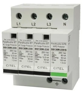 4-biegowy ogranicznik przepięć do sieci AC firmy CITEL o prądzie udarowym Iimp.= 12,5kA/bieg (10/350µs), gdzie jako element zabezpieczający w pierwszych trzech modułach zastosowano blok warystorów dużej mocy, natomiast w czwartym module sumaryczny iskiernik gazowy typu 1 do N/PE. Przeznaczony do montażu w rozdzielnicach wyposażonych w elementy ochrony odgromowej lub narażonych na oddziaływanie silnego pola elektromagnetycznego jako 1-szy stopień zabezpieczeń. Występuje również w wersji ze zdalną sygnalizacją zadziałania RS.