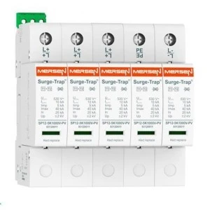 Ogranicznik typu 2 DC, 5-polowy do 2 stringów PV. Surge-Trap® Pluggable STPT2 Series - 5YPV to seria urządzeń ochrony przeciwprzepięciowej (SPD) Typu 2/Klasy II, przeznaczonych do rozładowywania indukowanych przepięć (8/20 μs) w systemach fotowoltaicznych, zgodnie z normami IEC/EN 61643-31. Jest to idealne rozwiązanie do ochrony 2 lub 3 MPPT (Maximum Power Point Tracking), oszczędzające miejsce i optymalizujące koszty. Urządzenie jest wtykowe, montowane na szynie DIN, co ułatwia instalację i konserwację.