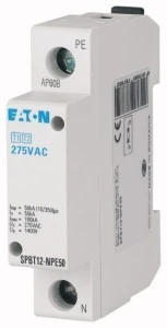 Ogranicznik przepięć typu 1+2 od Eatona z serii SPBT. Łatwy montaż, wytrzymała konstrukcja obudowy nie uszkadza się przy montażu. Prąd udarowy 50kA.