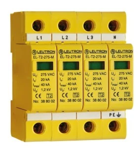 Modułowy ogranicznik warystorowy typu 2 niemieckiej firmy LEUTRON do zastosowań w sieciach trójfazowych TNS. Seria ograniczników EL-T2 charakteryzuje się wymiennymi modułami ochronnymi z optyczną sygnalizacją uszkodzenia.