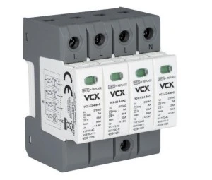 Ogranicznik przepięć VCX-C3-4-B+C to nowoczesne urządzenie przeznaczone do ochrony instalacji niskiego napięcia przed skutkami przepięć indukowanych i łączeniowych. Sprawdza się doskonale w sieciach typu TN, TN-S, TN-C oraz IT/TT, zapewniając skuteczne zabezpieczenie zarówno instalacji elektrycznej, jak i podłączonych do niej urządzeń.