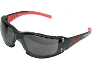 Okulary ochronne YT-73703 z szarymi szybkami umieszczonymi w oprawkach o podwyższonym komforcie. Szare barwienie w zależności od stopnia zaciemnienia ogranicza wpadanie jasnego światła. W okularach ochronnych tego typu filtr określa się jako ochronę przed olśnieniem słonecznym. Szybki zostały pokryte powłokami anti-fog oraz anti-scratch*. Ta pierwsza zapobiega parowaniu okularów, druga chroni przed nadmiernym porysowaniem. Szybki w najwyższej klasie optycznej nie zniekształcają obrazu, chronią również przed szkodliwym promieniowaniem UV. Oprawki zostały doposażone w zdejmowalną ramkę z pianki EVA, która ogranicza kontakt twardych elementów w okolicach oczu. Waga zaledwie 31 gramów oraz miękkie, elastyczne i antypoślizgowe końcówki zauszników sprawiają, że okularów niemal nie czuć na głowie.