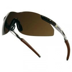Okulary ergonomiczne. Soczewki z poliwęglanu, brązowe, przydymione. Sportowy wygląd. Zauszniki wykonane z dwóch tworzyw. Giętkie końcówki zauszników. Elastyczny nosek z PVC zapewniający komfort, kolor przydymiony rozmiar -