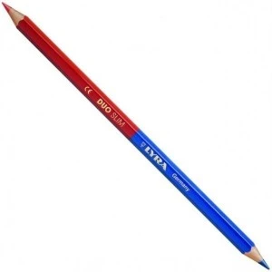 Dwustronny kształt ołówka zapewnia jego uniwersalne zastosowanie, zarówno na jasnych i ciemnych powierzchniach dzięki czerwonemu i niebieskiemu wkładowi.