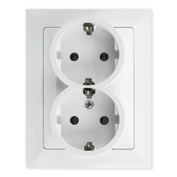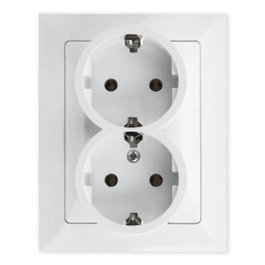 Gniazdka podwójne posiadają zintegrowaną, niewymienną ramkę. Oznacza to, że to gniazdo nie może być użyte w systemie ramek wielokrotnych.