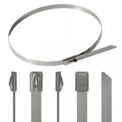 Opaska stalowa ze stali 304 bezhalogenowa z zatrzaskiem kulkowym. Dzięki specjalnemu mechanizmowi kulkowemu opaska BALL-LOCK zapewnia skuteczny i pewny montaż na wiele lat. Posiada doskonałą odporność na rozpuszczalniki, kwasy, oleje, smary, chemikalia, wodę morską i rozpuszczalniki chlorowane.