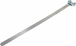 Opaski wykonane są ze stali nierdzewnej oraz wyposażone są w stalowy i ocynkowany zacisk do podłączenia przewodu PE o przekroju od 2,5 do 16 mm2 ( przewód w tulejce ) lub do 25mm2 ( przewód niezaizolowany typu żyła sztywna lub przewód wielodrutowy bez tulejki ).
