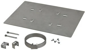 Opaska zaciskowa OZB4 z blachą montażową Przeznaczenie Opaska zaciskowa z blachą montażową przeznaczona jest do montażu obudowy hermetycznej na elementach typu słupy, maszty elementy konstrukcyjne itp. w sposób nienaruszający struktury elementu nośnego. Wymiary 300 x 220 [+/-2 mm]