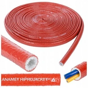 Oplot kablowy Hiprojacket to doskonała ochrona termiczna kabli i przewodów. Gęsto pleciona koszulka z włókna szklanego z grubą powłoką silikonową została skonstruowana zgodnie z normą lotniczą Aerospace Standard SAE AS1072 i umożliwia wiązkom kabli oraz zespołom węży przejść testy wg wymagać normy AS1055.