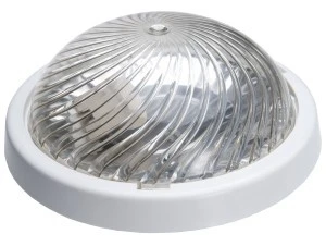 Podstawa oprawy wykonana jest z białego polipropylenu, klosz z przeźroczystego poliwęglanu.