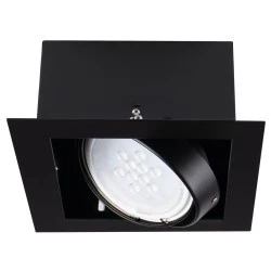 Oprawa typu downlight, zasilanie 220-240V AC, 50Hz; moc max 25W, źródło światła ES-111, trzonek GU10, oprawa ruchoma w zakresie horyzontalnym 35°, wertykalnym 65°, IP 20, kolor czarny.
