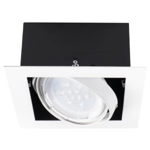 Oprawa typu downlight, zasilanie 220-240V AC, 50Hz; moc max 25W, źródło światła ES-111, trzonek GU10, oprawa ruchoma w zakresie horyzontalnym 35°, wertykalnym 65°, IP 20, kolor biały.