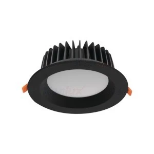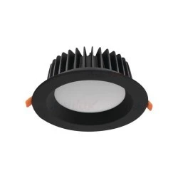 Oprawa typu downlight LED, zasilanie 220-240V AC, 50Hz, moc 20W, źródło światła LED SMD (w komplecie), Tc 4000K, strumień świetlny 1900lm, kąt rozsyłu światła 90°, trwałość źródła światła 50000h, ilość cykli wł/wył: 30000; IP 44/20; materiał obudowy: stop aluminium; materiał klosza: tworzywo sztuczne; kolor: czarny.