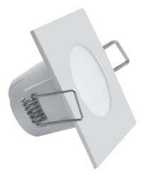 OPRAWA LED SMD. Oprawa oświetleniowa przeznaczona do zabudowy w sufitach podwieszanych. Po zabudowaniu, od strony użytkowej, charakteryzuje się wodoszczelnością i pyłoodpornością. Wyrób można stosować w odpowiednich strefach łazienek oraz w innych wilgotnych pomieszczeniach. Obudowa wykonana jest z tworzywa sztucznego. Źródłem światła są energooszczędne i wysokowydajne diody LED typu SMD. Oprawa posiada zintegrowany, wewnętrzny zasilacz LED. Oprawę morza zasilać bezpośrednio z sieci zasilającej 230V.