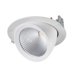 Oprawa typu downlight LED, zasilanie 220-240V~,50Hz, moc 33W, źródło światła LED COB (w komplecie), Tc 4000K, strumień świetlny 3670lm, kąt rozsyłu światła 45°, trwałość źródła światła 30000h, IP20, kolor biały.