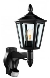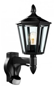Oprawa elewacyjna z czujnikiem ruchu i zmierzchu Steinel L 560 S PIR max. 60W E27 IP44 IK03 230V czarna / szkło ST634216