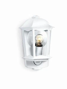 Oprawa elewacyjna z czujnikiem ruchu i zmierzchu Steinel L 190 S E27 PIR max 100W IP44 230V biała / szkło /alu ST644512