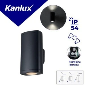 Oprawa elewacyjna, Długość [mm]: 100, Szerokość [mm]: 100, Wysokość [mm]: 190, Częstotliwość znamionowa [Hz]: 50, Kierunek świecenia oprawy: góra lub dół, Klasa ochronności przed porażeniem elektrycznym: I, Kolor: czarny, Materiał klosza: szkło, Materiał obudowy: stop aluminium, Miejsce montażu: do nadbudowania na ścianie, Miejsce zastosowania: wewnątrz i na zewnątrz, Minimalna odległość od oświetlanego obiektu: 0,5m, Moc maksymalna [W]: 2 x max 10, Napięcie znamionowe [V]: 220-240 AC, Rodzaj przyłącza: kostka śrubowa, Stopień IP: 54, Trzonek: GU10, Zakres przekrojów stosowanych przewodów [mm2]: 1÷1,5, Zakres temperatury otoczenia, na którą może być narażony wyrób [°C]: -20÷35, Źródło światła: PAR16, Źródło światła w komplecie: nie.