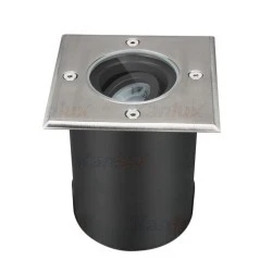 Oprawa najazdowa kwadratowa, zasilanie 220-240V~; 50Hz, moc max 7W, materiał ramki: stal nierdzewna; ,materiał obudowy: stop aluminium/tworzywo sztuczne; źródło światła PAR16 LED, trzonek GU10, IP 67, IK 10; dopuszczalny nacisk statyczny 20kN; puszka montażowa w komplecie, możliwość łączenia przelotowego, regulowany kąt świecenia (360° horyzontalnie i 25° wertykalnie); kolor: stal nierdzewna.
