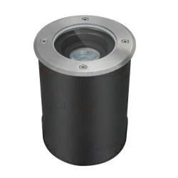 Oprawa najazdowa okrągła, zasilanie 220-240V~; 50Hz, moc max 7W, materiał ramki: stal nierdzewna; ,materiał obudowy: stop aluminium/tworzywo sztuczne; źródło światła PAR16 LED, trzonek GU10, IP 67, IK 10; dopuszczalny nacisk statyczny 20kN; puszka montażowa w komplecie, możliwość łączenia przelotowego, regulowany kąt świecenia (360° horyzontalnie i 25° wertykalnie); kolor: stal nierdzewna.