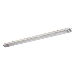 Oprawa pyłoszczelna pod tuby LED, zasilanie 220-240V~; 50Hz, źródło T8 LED, moc 2 x max 36W, trzonek G13, odbłyśnik stalowy, IP 65, klosz polistyren, kolor szary.