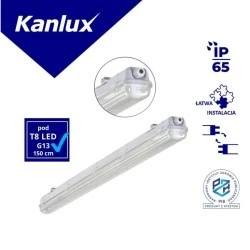 Oprawa pyłoszczelna LED, zasilanie 220-240V~;50/60Hz, moc max 58W, źródło światła LED, IP 65, oprawy są przeznaczone do źródeł T8 LED 220-240 V~; 50/60 Hz z zasilaniem jednostronnym.