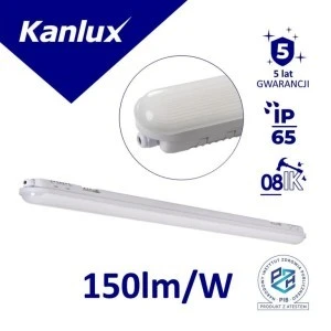 Oprawa pyłoszczelna LED, zasilanie 220-240V~;50Hz, moc 26W, źródło światła LED SMD (w komplecie), Tc 4000K, strumień świetlny 3900lm, trwałość źródła światła 50000h, IP 65, IK 08; klosz ryflowany podnoszący strumień świetlny.