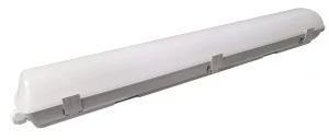 OPRAWA LED SMD. Oprawa wykonana z tworzywa sztucznego - podstawa (ABS), - klosz: mleczny polistyren (PS). Wyrób został zaprojektowany jako energooszczędny zamiennik klasycznych opraw tzw. hermetyków typu T8. Charakteryzuje się wysoką wydajnością modułu LED i energooszczędnością na poziomie 50% w stosunku do opraw świetlówkowych T8/VVG. Skuteczność oprawy w zależności od wariantu mieści się w przedziale 90-100lm/W. Oprawa charakteryzuje się także wysokim stopniem IP, gwarantującym pyłoodporność i wodoodporność. Wyrób posiada wbudowany, wewnętrzny zasilacz. Źródłem światła są moduły z diodami LED typu SMD 2835.