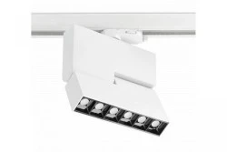 Reflektor LED do szynoprzewodów 3-fazowych z charakterystycznym soczewkowym układem optycznym zawężającym kąt świecenia do 48°.