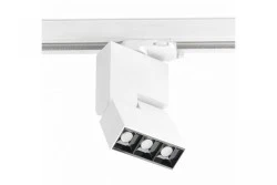 Reflektor LED do szynoprzewodów 3-fazowych z charakterystycznym soczewkowym układem optycznym zawężającym kąt świecenia do 48°.