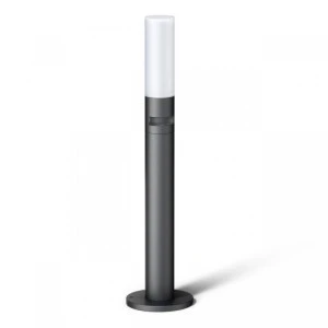 Oprawa GL 65 S o wysokości 77 cm imponuje swoim prostym wzornictwem. Atrakcyjna oprawa LED z czujnikiem podczerwieni 180° i promieniem wykrywania 8 m wyróżnia się antracytową podstawą wykonaną z wysokiej jakości aluminium i opalizującym szklanym kloszem zapewniającym równomierny rozsył światła. Można go stosować zarówno jako atrakcyjne, samodzielne rozwiązanie, jak i w wizualnej interakcji z innymi produktami z rodziny L 600 firmy STEINEL. W połączeniu z lampą ścienną L 605 i lampą L 620 CAM tworzy całkowicie harmonijny wygląd całego domu — od ścieżki, przez elewację, po frontowe wejście. Oprawa wyposażona jest w praktyczną funkcję Nightmatic i w razie potrzeby zapewnia niezawodne, ciągłe oświetlenie od zmierzchu do świtu.