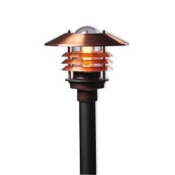 Oprawa ogrodowa do montażu na słupie fi50 obudowa i pierścienie z patynowanej miedzi klosz szklany E27 miedź AVG02