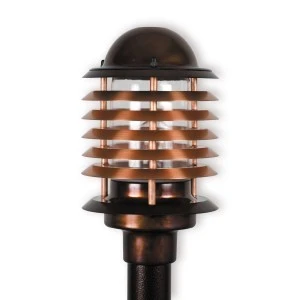 Oprawa ogrodowa do montażu na słupie fi50 obudowa i pierścienie z patynowanej miedzi klosz szklany E27 miedź AVGP06